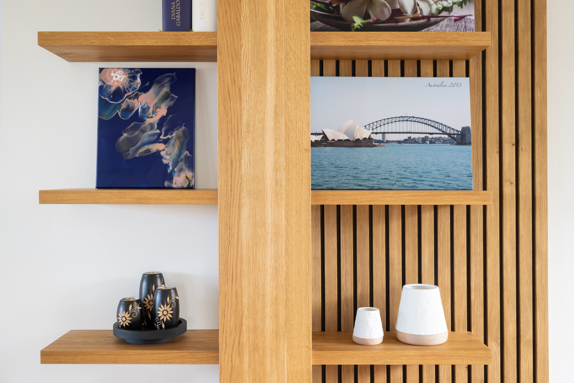 FERNSEHWAND IN EICHE UND LINOLEUM
